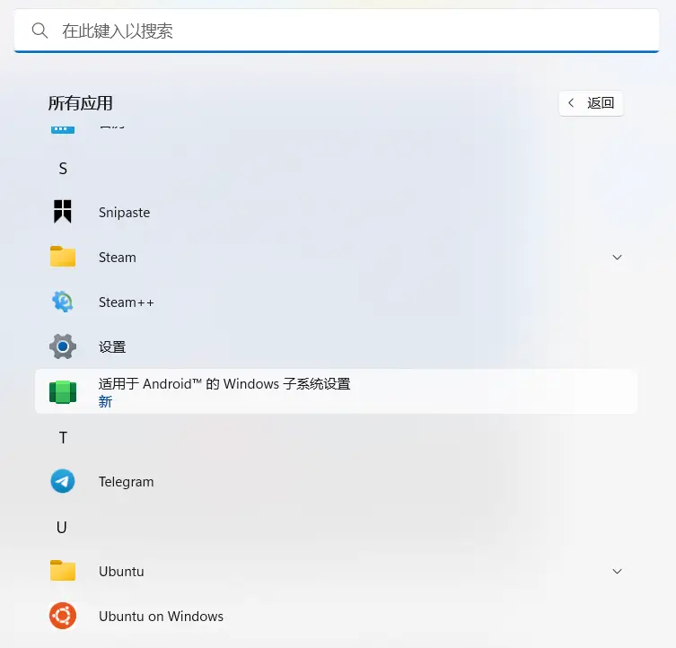 如果安装正确,你应当可以在开始菜单中找到 WSA。